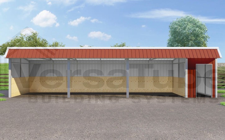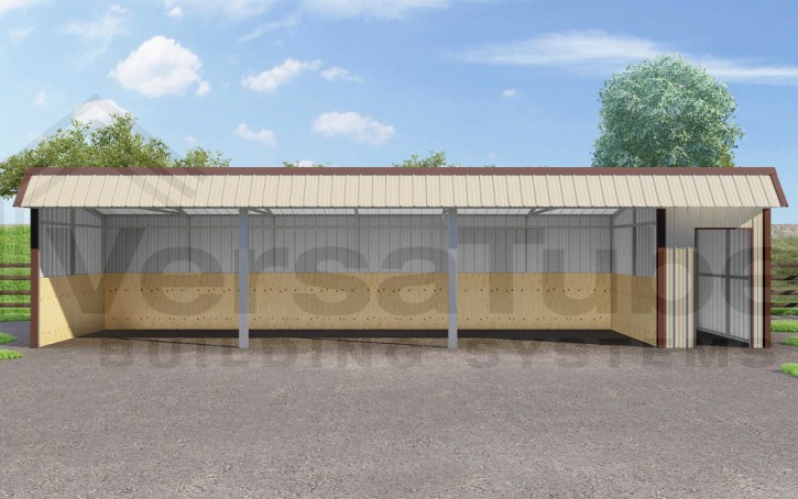 Single Slope DIY loafing shed kit provides premium shelter protection for your animals and livestock by combining the desired strength and durability of steel with the added resistance to fire, termites, weathering and rot – and it comes with a built-in storage room.