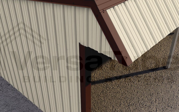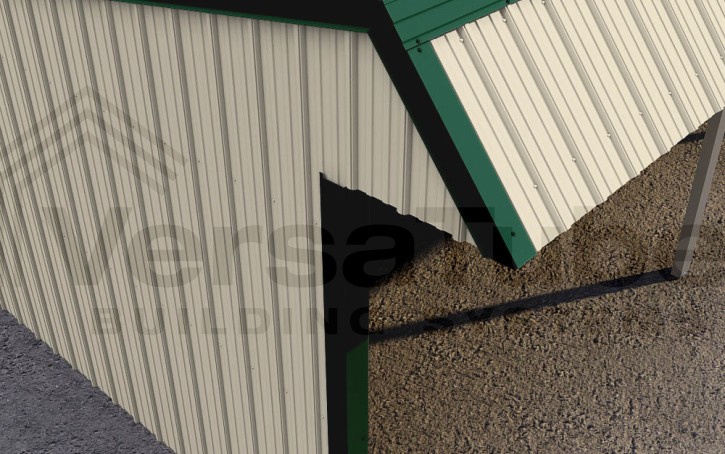 Single Slope design includes a 6-ft. wide x 12-ft. deep storage room with walk door frame, along with roof purlins and side girts for all-around vertical sheet metal application, which allows greater snow, rain and debris run-off. And in-the-field assembly time is drastically reduced with our pre-cut frame components and patented Slip-Fit frame connections.